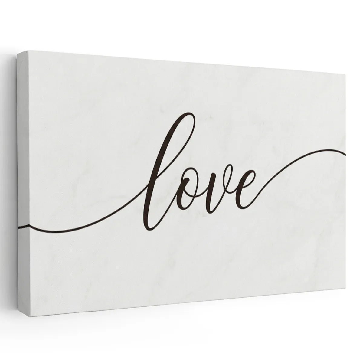 Set against a quiet bedroom space, this horizontal canvas wall art anchors the room with a single word: love. Its flowing cursive script and monochrome palette create a calm, affectionate presence above a bed or along a clean-lined wall.