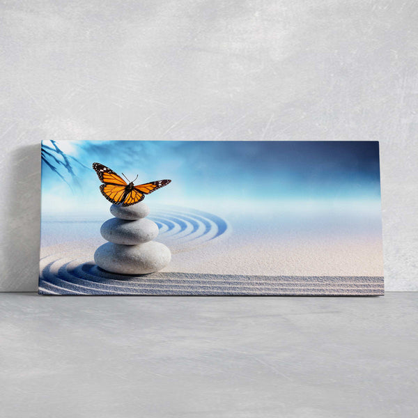 This Butterfly Zen Garden Canvas Wall Art is a great way to give an artistic touch to any room and refresh your spirit every time you look at it.