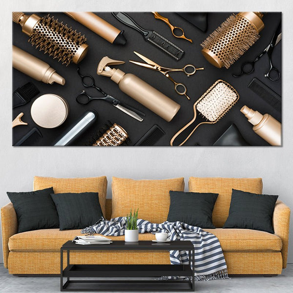 Gold Hairdresser Tools Multi Panel Canvas Wall Artis a great way to give an artistic touch to any room you desire. Express your pride in a unique way and set a positive tone to the entire space.